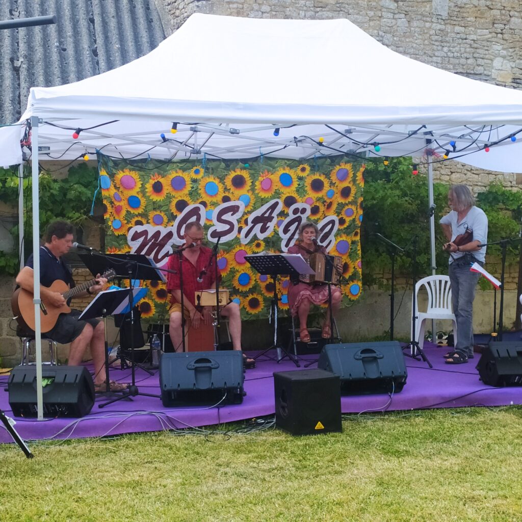 La soirée s’est poursuivie autour d’un repas partagé puis d’un bal folk champêtre animé par le groupe Mosaïc qui a enchanté petits et grands.